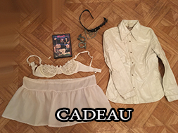 CADEAU: 1 DVD sex, 1 chute de latex blanc, 1 paire de chaussure taille 41, 1 baillon, 1 pochette bijoux, 1 lingerie taille 38