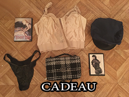 CADEAU: 1 DVD SM, 1 corset elastique chair taille 44, 1 kepi police fantaisie, 1 sac noir et blanc, 1 string, 10 photo de moi NAB